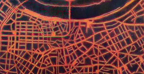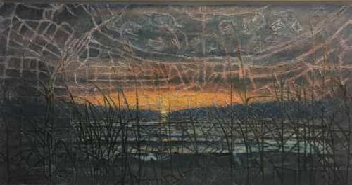 Düsseldorf, Öl, Acryl und Sand auf Leinwand, 75 x 145 cm